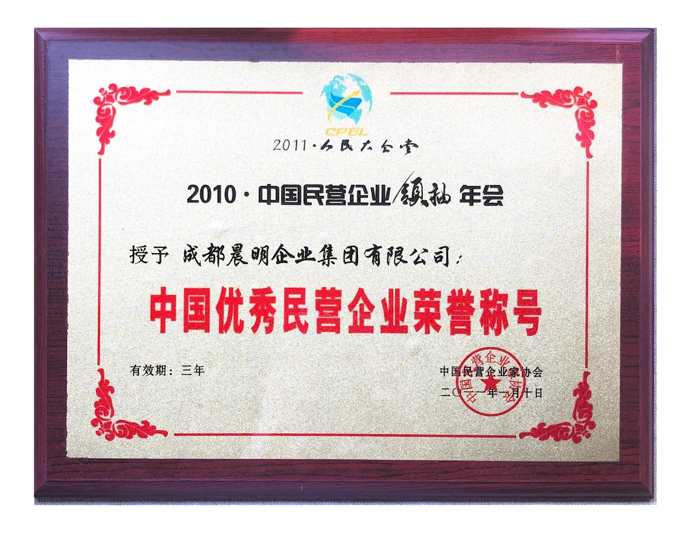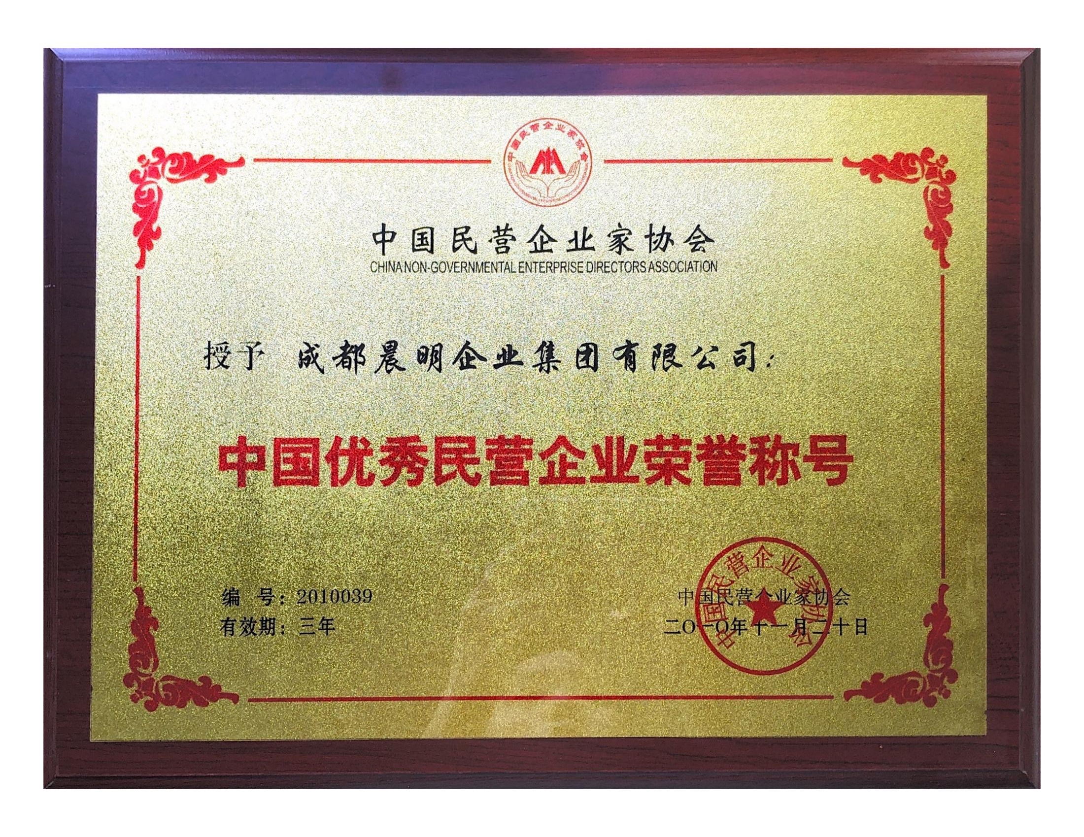 中国优秀民营企业荣誉称号